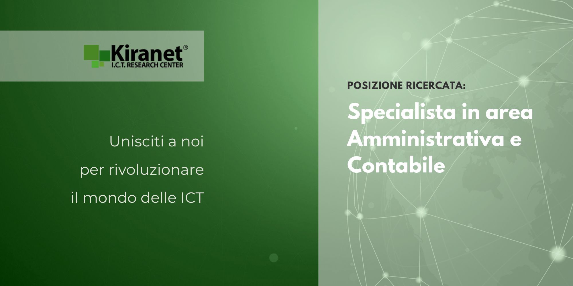 Per espandere il proprio team, KIRANET e COEVIA SISTEMI ricercano uno SPECIALISTA AREA AMMINISTRATIVA E CONTABILE.